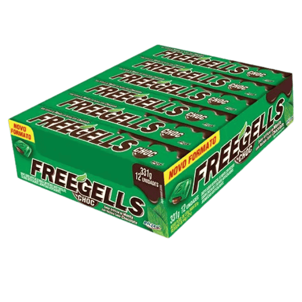 Drops Freegells mentolado nos sabores Menta, Morango, Eucalipto, Extra-forte, Cereja, opções com e sem chocolate.